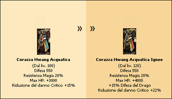 Il Potenziamento Ignee è disponibile sia per le Hwang Acquatiche che per le Corazze del 115